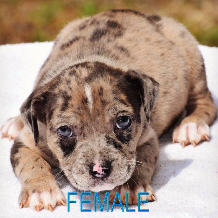 Another phenomenal breeding completed. We should have confirmation early June. Blue Eyed Diva and Axle Rose stack up so well next to each other. There’s no question Mark about this one. These puppies will be big and bully with beautiful merle colors. Taking deposits now